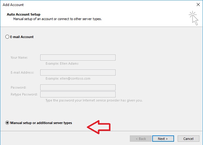 4- مطابق شکل زیر روی Manual setup یا additional server types کلیک کرده و دکمه Next را بزنید.